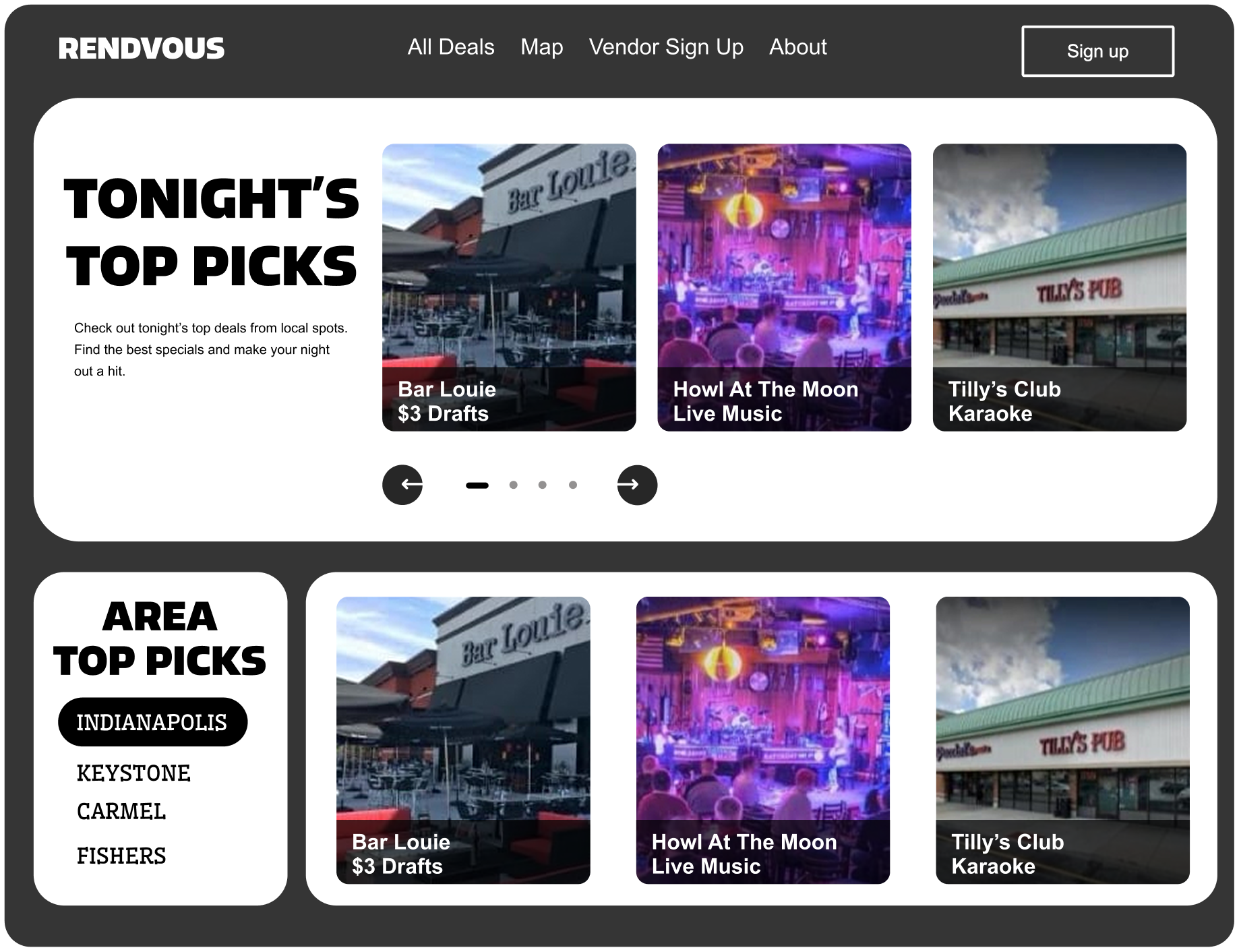 Create a database that covers a wide range of restaurants and bars across Indianapolis, featuring all the key details like specials, deals, hours, and locations. The platform will also be paired with a user-friendly, visually engaging interface, making it easy for users to browse what’s on offer. Furthermore, to enhance the experience, there are filters and search tools so users can easily sort by type, location, time, and price making it simple to find the best options to fit their plans.